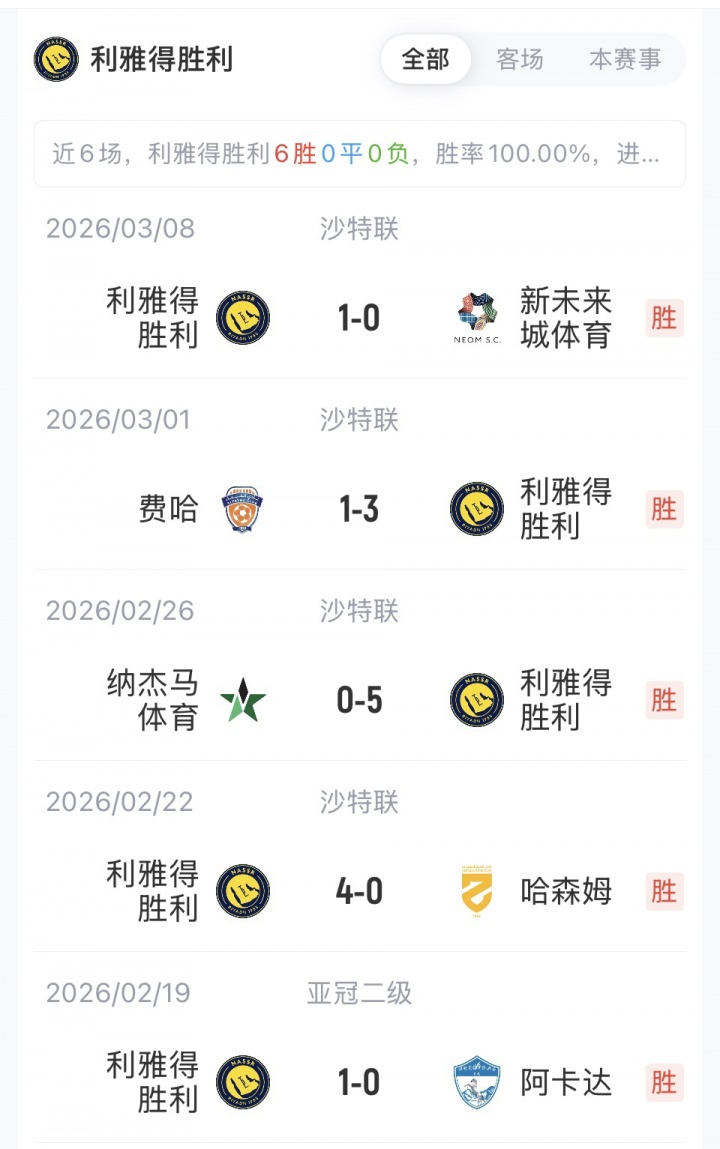 利雅得胜利替补:1-阿奇迪、2-哈纳姆、96-纳赛尔、4-纳德尔、83-纳吉迪、17-哈巴利、19-哈桑、16-马兰、29-加里卜